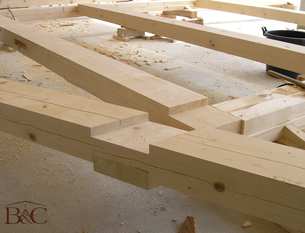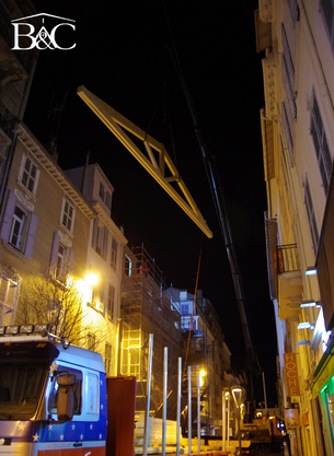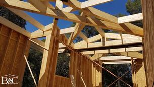 Chaque pièce et chaque assemblage sont prévus à l'avance par nos dessinateurs. Les 1200 m² d'ateliers et d'entrepôts de B&C lui permettent de préfabriquer tous les bâtiments qui lui sont confiés. Ce procédé rend les chantiers rapides et efficaces, une maison peut être levée en quelques jours !